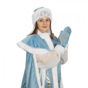 Карнавальный костюм Снегурочка плюш с серебряными узорами ПРОДАЖА